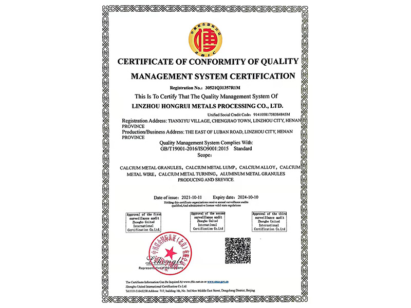 質(zhì)量管理體系認(rèn)證證書英文版